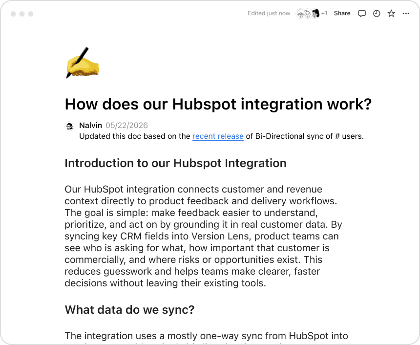 Use the Nalvin Notion integration to automate documentation: keep internal docs accurate, searchable, and continuously maintained—without manual busywork.